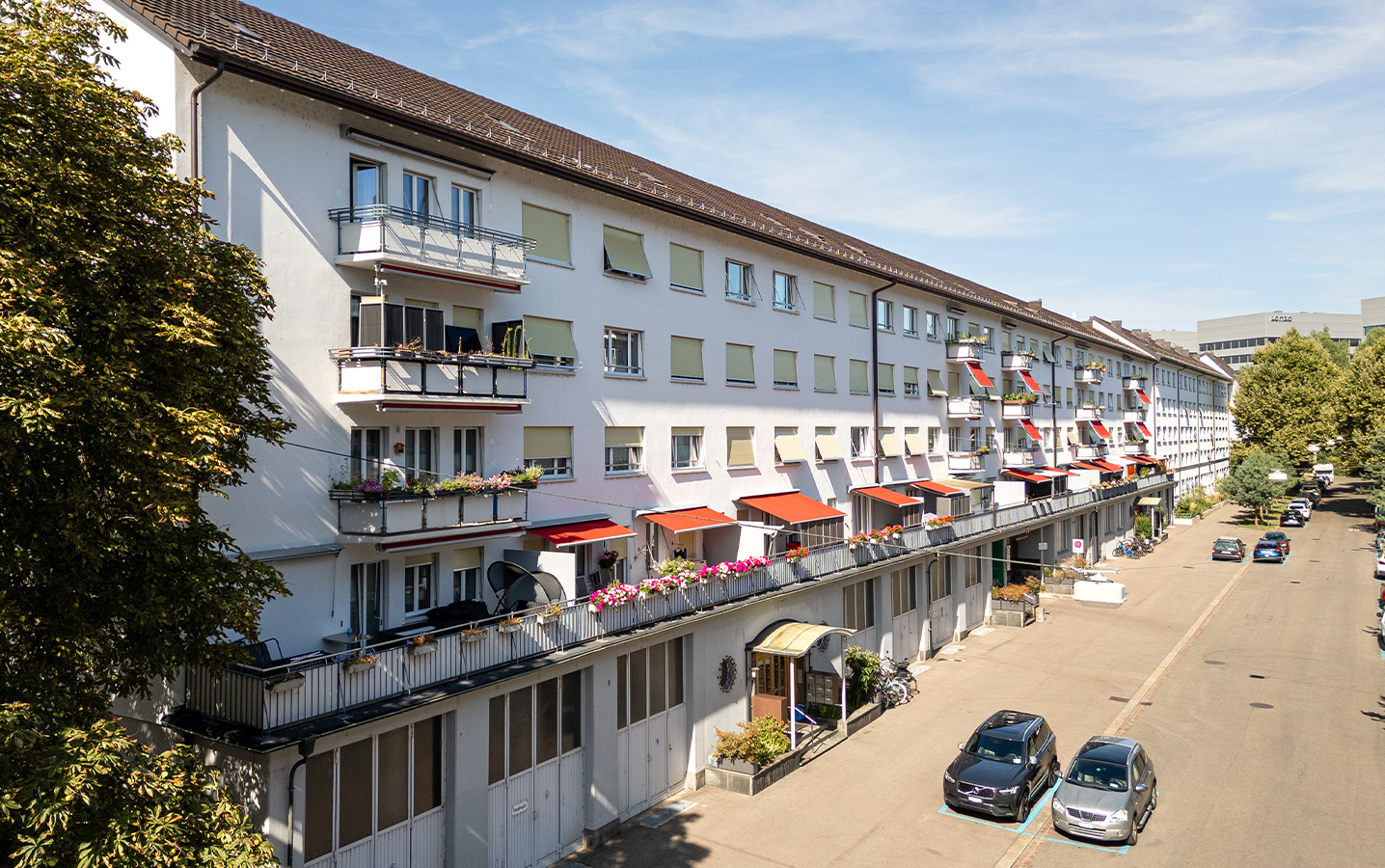 Die Häuser wurden im Jahr 1948 zusammen mit der BVB im Baurecht erstellt. Die Liegenschaft befindet sich zwischen dem Rhein und der Wiese, neben dem Tramdepot am Wiesenplatz. Im EG befanden sich damals Einstellplätze sowie eine Werkstatt für die Autobusse der BVB. Diese werden heute von der Milizfeuerwehr gemietet. Ebenfalls hat die Feuerwehr ein Museum errichtet. Im Jahr 2023 wurde die Siedlung mit neuen Fenstern, Rollladen, Sonnenstoren sowie neuen Türen für den Hintereingang ausgestattet.